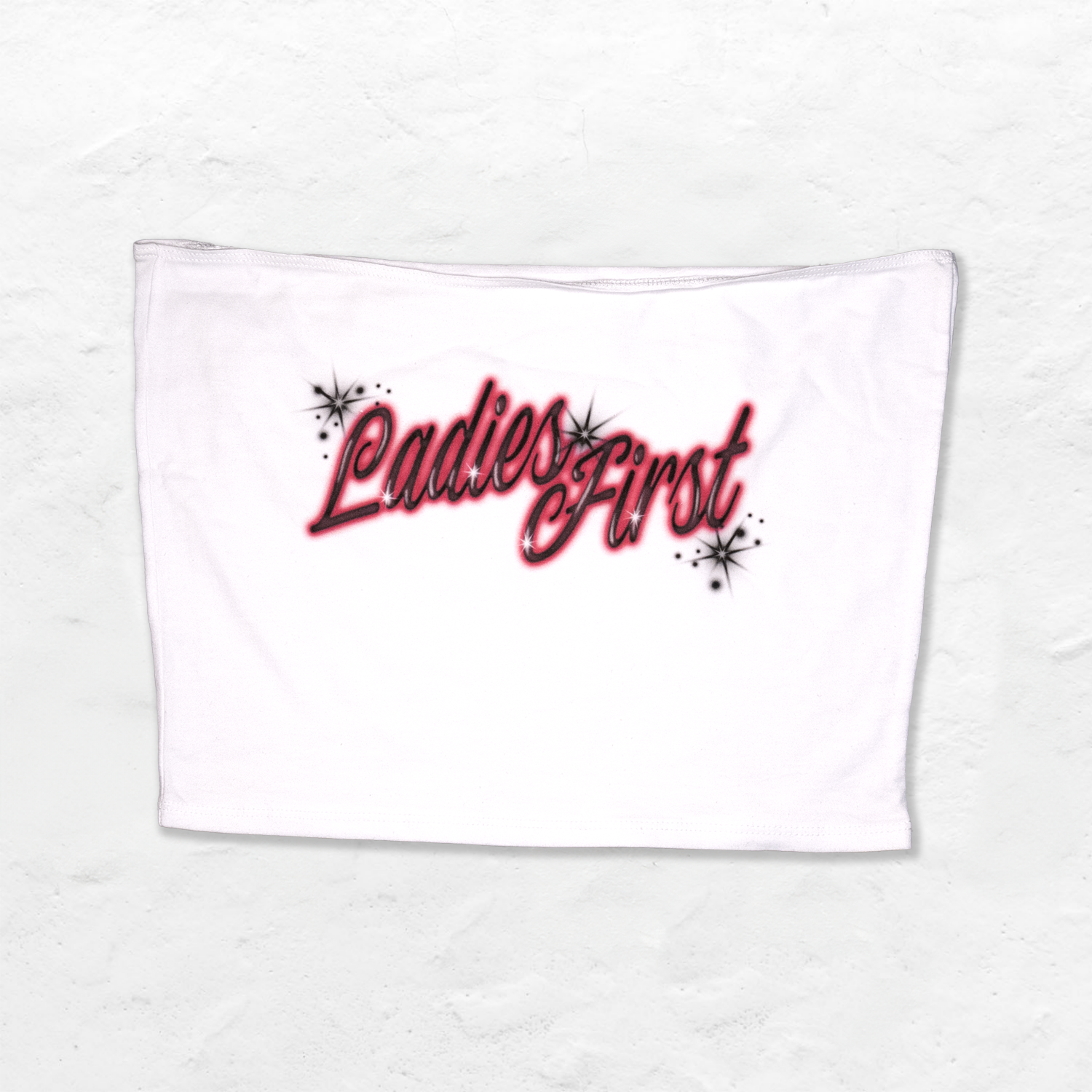 Introducing the Ladies First Tube Top - the perfect summer accessory for the confident, made of airy cotton, this tube top features an eye-catching pink and black airbrush design print. It's sure to make you stand out while keeping you cool and comfortable. Get ready to turn heads!